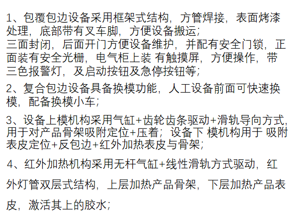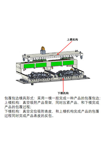 热压包边包覆设备在汽车领域主要运用于仪表板,车门内饰板,ABC 柱,备胎盖板等部位,通过表皮吸附与热压成型技术,提升产品的档次感与触感。